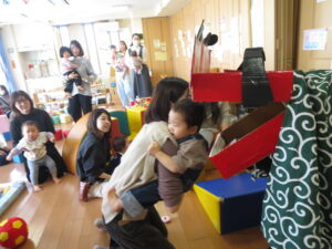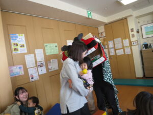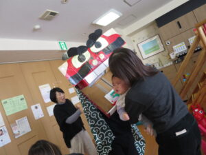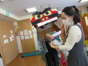 1月15日(木)園の新年お楽しみ会で、獅子舞のししごろうさんが来てくれました。