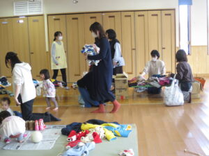 「たくさんいただきました」「4月からの入園に備えてとても助かります」と皆さんとても満足そうな様子でした。