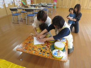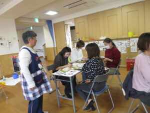 ボランティアさんやお母さん同士お話しながら、和やかな雰囲気の中飾り付けの作業を楽しんでいました。