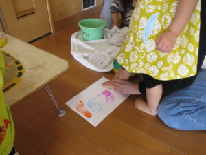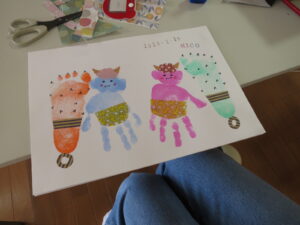 出来上がった手形足形アートはご自宅に飾るのはもちろん、おじいちゃんおばあちゃんへのプレゼントとしてもおすすめです。