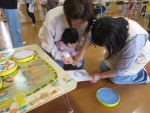 お母さんから離れられるお子さんはもりのこ職員とボランティアさんの託児もありますので、ゆっくり作業できると思います。